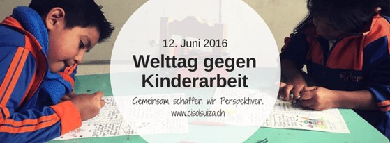 Am Sonntag, den 12. Juni 2016, findet der Welttag gegen Kinderarbeit statt. Setzen Sie sich mit uns für von Armut und Kinderarbeit betroffene Kinder in Ecuador ein. Unterstützen Sie zum Welttag gegen Kinderarbeit unsere Projekte in Ecuador und erzählen Sie Ihren FreundInnen und Verwandten von dieser Aktion.